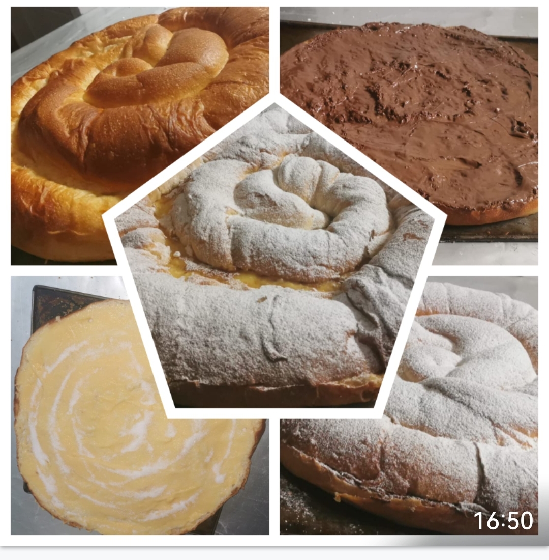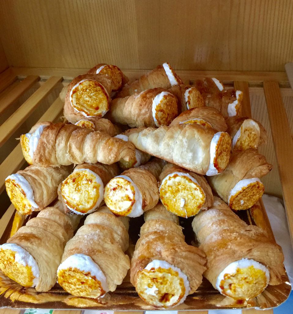 Todo tipo de bollería dulce ( napolitana chocolate, caña chocolate, ensaimadas, bretzel de crema...)